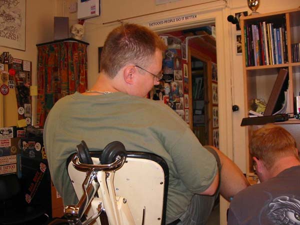 So the day had finally arrived where I would get my new tattoo. I had a good friend from Copenhagen visiting me, and she joined along, since she have a fetish for tattoo's ;-). And it was her that took the pictures. So here goes with the pictorial.