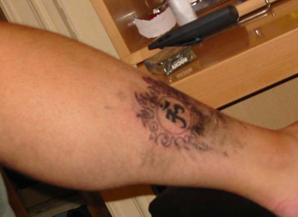 Placed around the Om sign it is supposed to have the inner quiet strength paired with the outward strength, and since it is to be on my ankle it is meant to give me a base of self-assurance and strength to "build on", to stand on, to base my future life on.